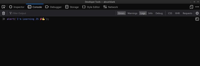 // main.js console.log(`I'm Learning JS 🎉💪`);